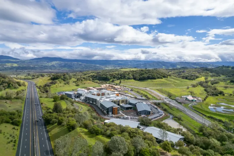Hotel Appellation aims to offer a mixture of comfort and high-end amenities, catering to both hotel guests and the local community. Recreational facilities at the hotel include two swimming pools, a modern fitness center, and a luxurious wine country spa. The hotel also features lobby and rooftop bars, extensive event spaces, and affordable workforce housing units. This combination of amenities aims to support local employees and contribute to Healdsburg's housing solutions.