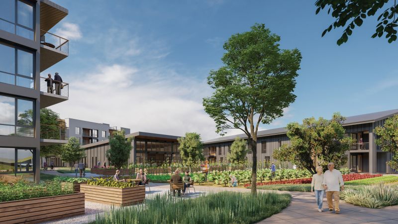 Enso Village is the first development to open in North Village, offering a Zen-inspired approach to retirement living. Focused on mindful aging, environmental stewardship, and healthy life choices for adults 60 and older, Enso Village aims to foster a deeper connection with nature and self. When fully occupied, Enso Village will house about 300 residents aged 60 and over. The community will offer various levels of care, including in-home care, assisted living, and memory care, with the latter two starting soon. There will be 24 rooms designed for residents with mild to moderate dementia, Alzheimer’s, or similar conditions, and 30 assisted living units separate from memory care.