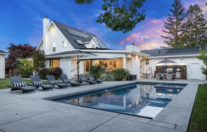 Windsor is a hidden gem within Sonoma County, known for its spacious properties and family-friendly environment. At 9961 Herb Rd., $2 million buys a family-oriented estate that spans 2,808 sqft on nearly half an acre. The home includes four bedrooms, a den, and a resort-style backyard complete with a pool, spa, and outdoor kitchen. This property is designed for those who love to entertain, with features like a pizza oven, fire pit, and basketball court.